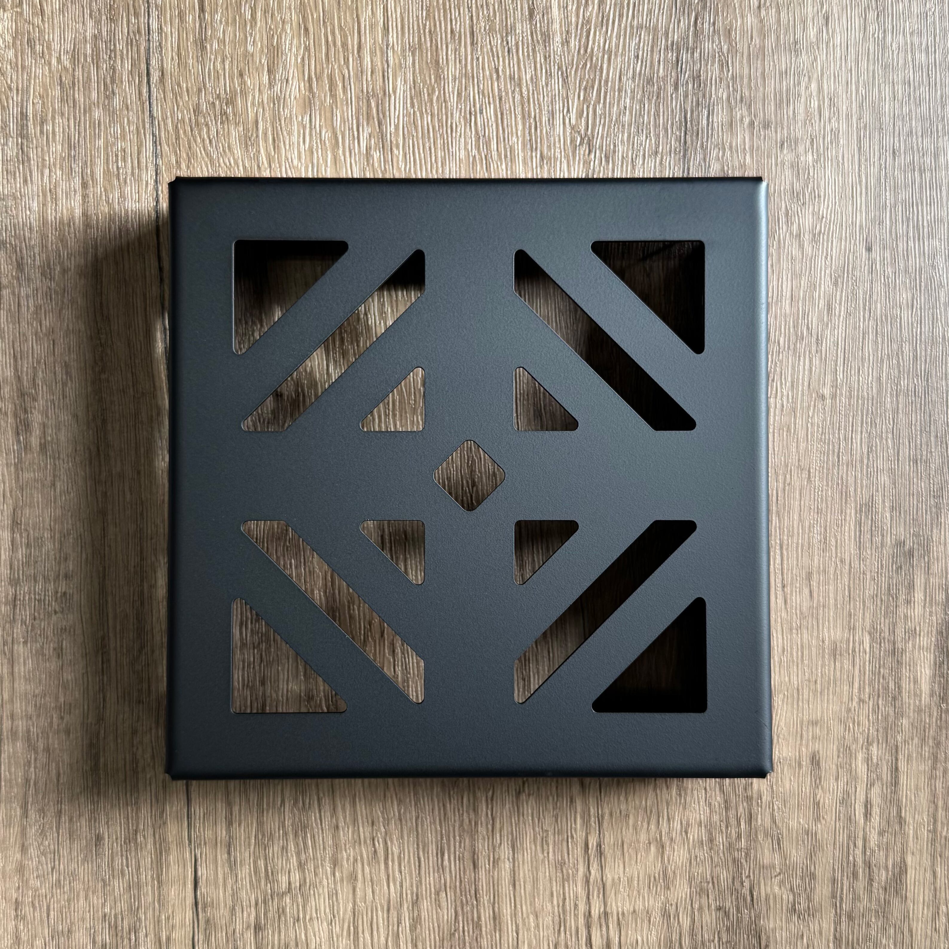 スチール材に精巧なレーザーカットを施すことにより、デザイン性と空気の通り道を両立。