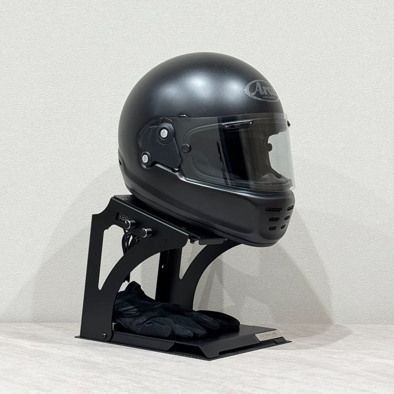 ライダーにとって命ともいえるヘルメットを玄関先やお部屋、ガレージのインテリアとしてカッコよく飾ること、大切に保管できることを目的に製作しました。